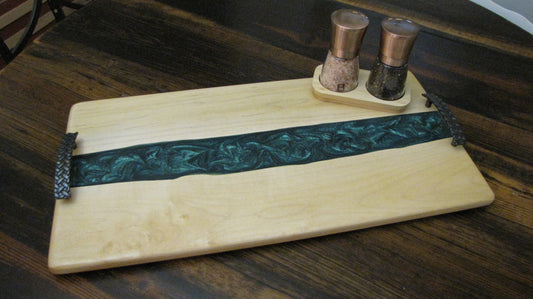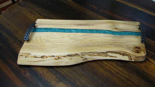 Charcuterie Serving Tray Maple Slab Live Edge Fractured Epoxy Inlay