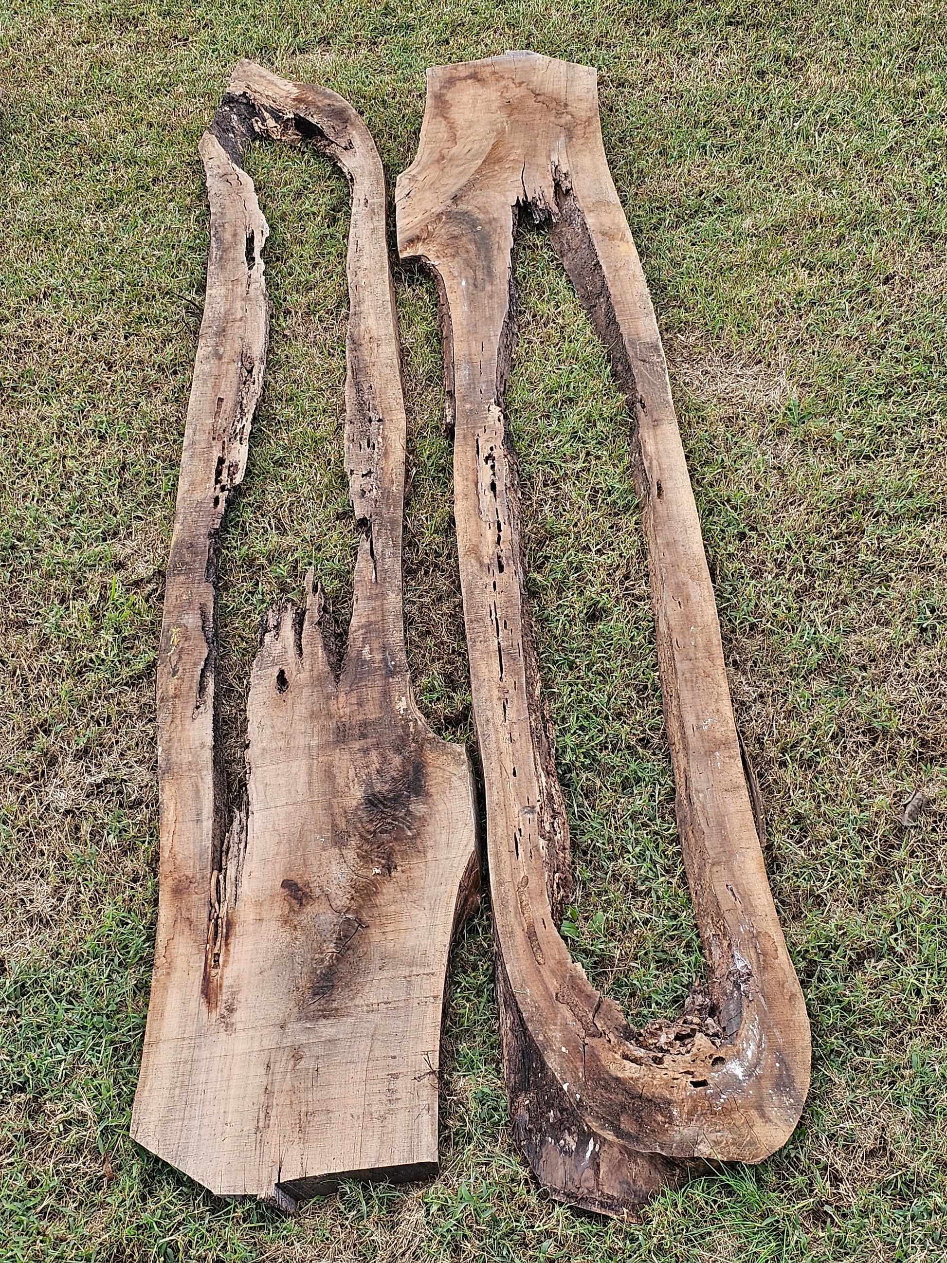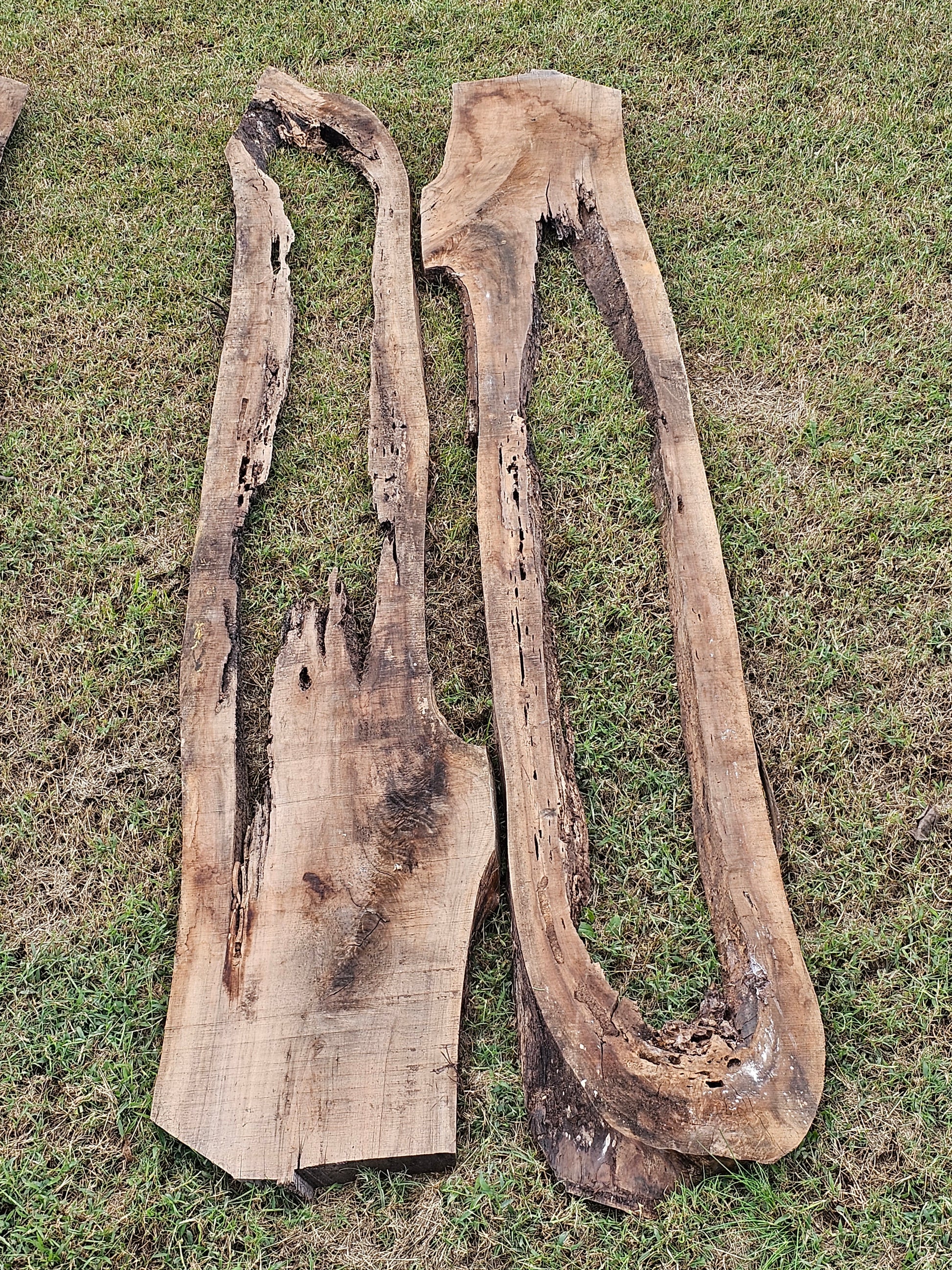 Beautiful Walnut Slabs with unlimited potential to build something with unmatched uniqueness! These are closed at the ends where the tree hollows out, the wood is stable at 2 inches thick and kiln dried waiting for the right imagination. Lets build something you cant quit talking about. They measure approximately 36 inches wide (together) and 9 feet long.