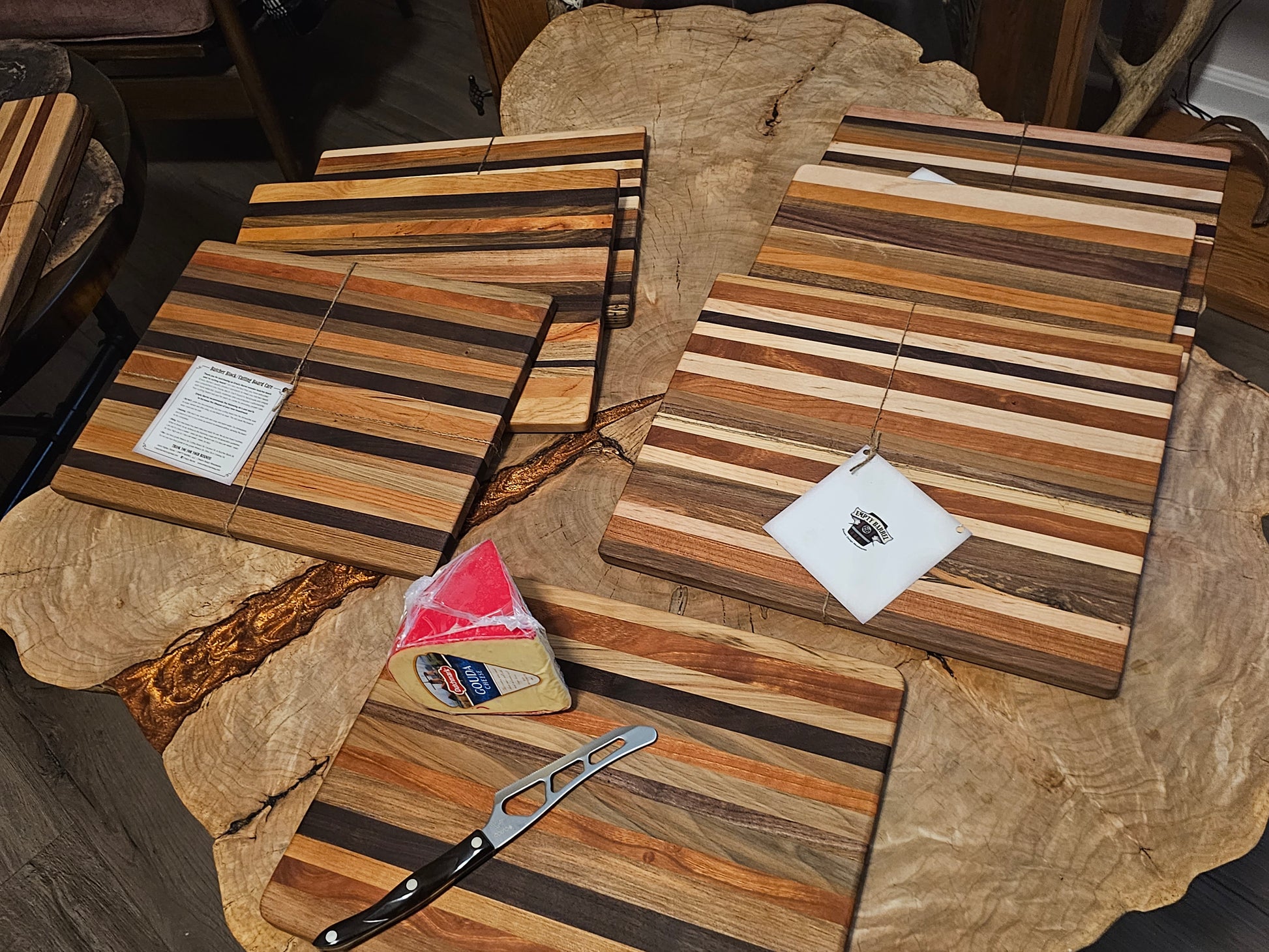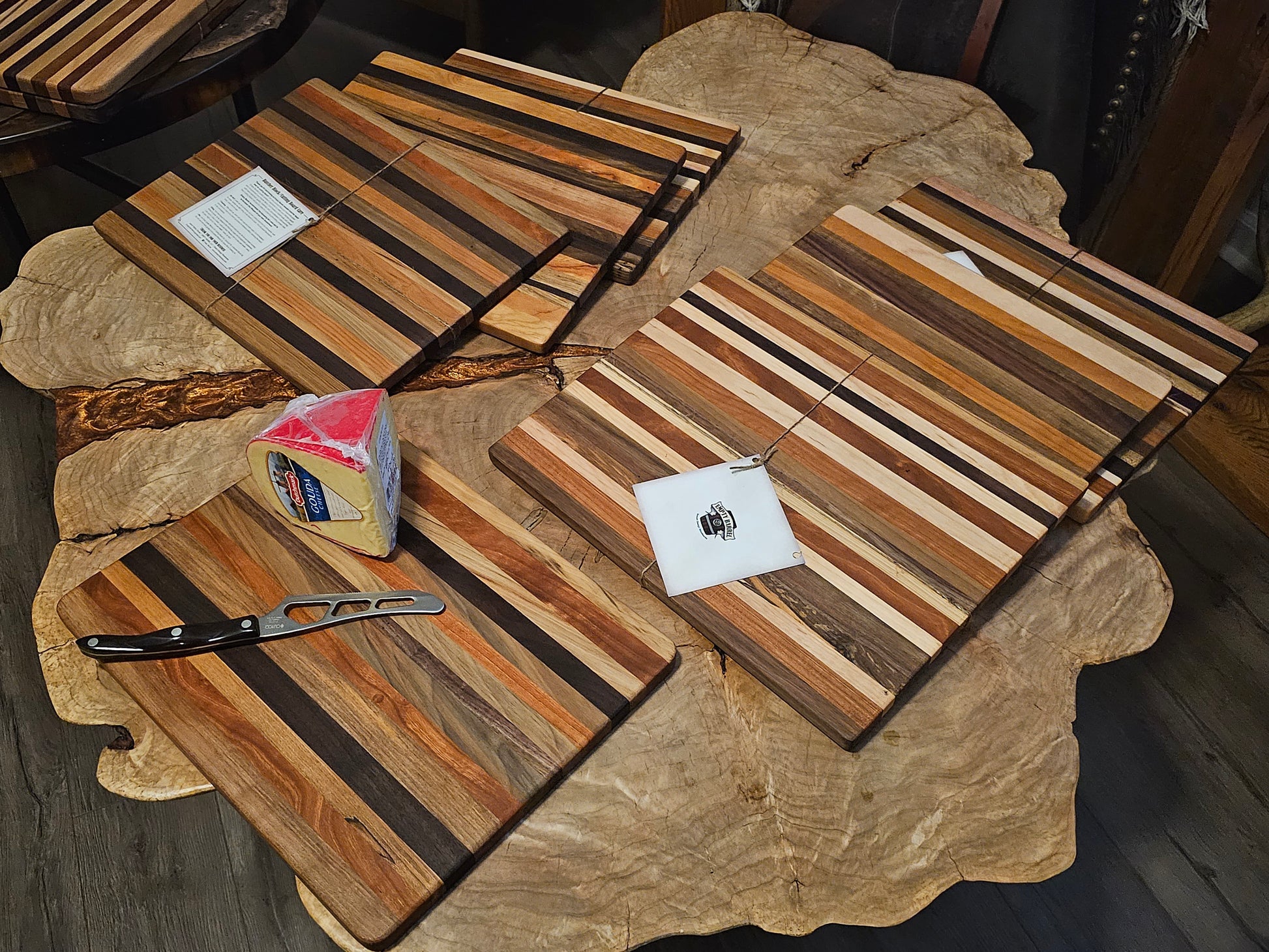 All cutting boards are made from hand-selected hardwood and exotic woods. I am very picky about which materials are utilized for cutting boards and always finished with food-grade mineral oil.