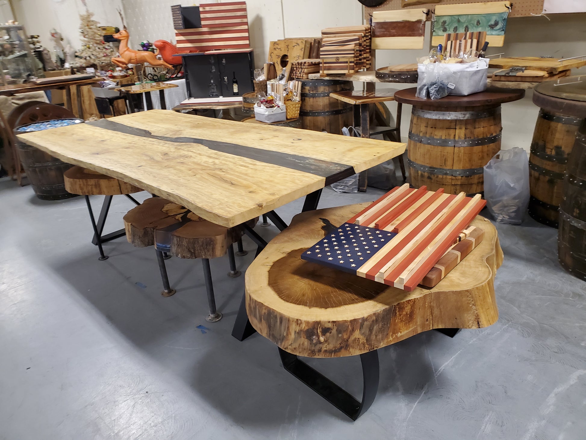 This Epoxy River Table is truly one of a kind; made from Tupelo Wood that has a blond color with darker tan characteristics. The wood is absolutely stunning with the wood grain and blond accents. The Epoxy River is a blend of colors producing a marble type color that provides a beautiful contrast that does not overpower the wood. The legs are custom made X pattern, powder coated and fastened to the table using inserts to protect the longevity of the table.